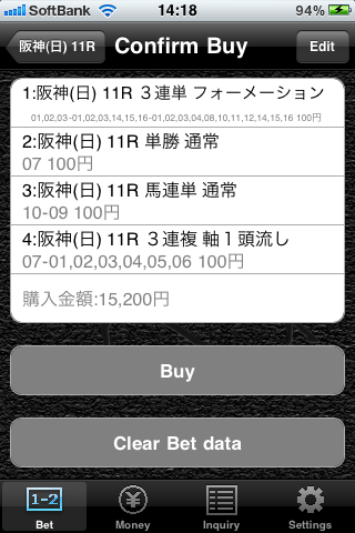 Version 1.2[2011.02.11] * It functions so that it is changed from a bet input screen to an odds screen of PAT and adds it. * It functions to be able to manage the plural (5 at the maximum) PAT accounts and adds it. * It functions to be able to set an automatic rotation (portrait/landscape) and adds it. * With a bet input screen, I revise only some light movement at the time of the horse number choice. * I revise it so that application do not down at the time of Internet non-connection. |